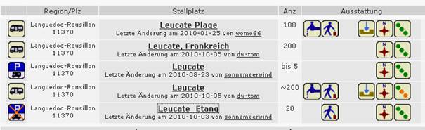 Diese finde ich in der Datenbank wenn ich nach Leucate suche